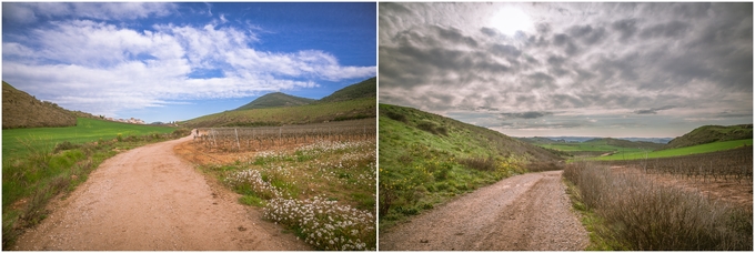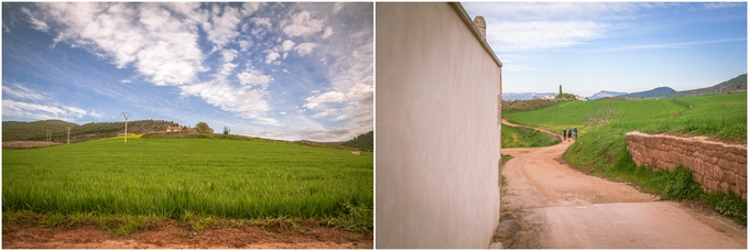 도착한 뒤 휴식한 뒤 다시 길을 나서게 되면 포도밭과 목초지를 따라 가게 된다. 파란 하늘이 펼쳐져