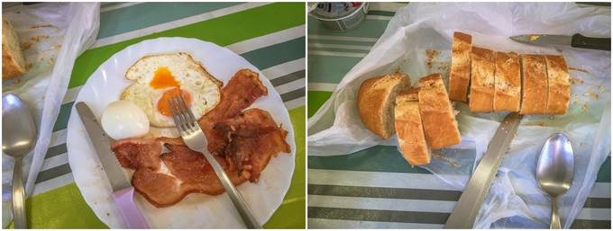 ▲ 간단하게 마트에서 베이컨과 계란, 바게트를 사와서 먹은 저녁 식사.