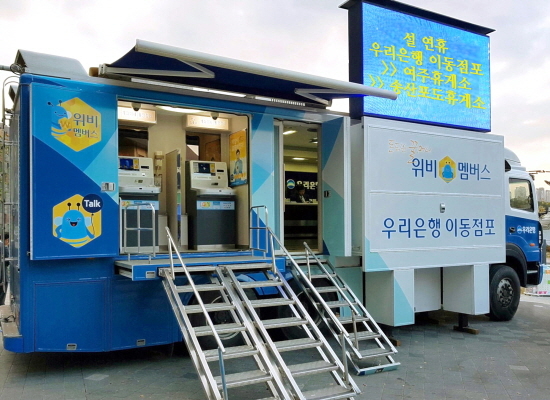 (조세금융신문=민서홍 기자) 우리은행(은행장 이광구)은 설 연휴를 맞아 귀성객들에게 편리한 금융서비스를 제공하기 위해 이동점포 ‘위버스(WeBus)’를 운영한다고 23일 밝혔다.