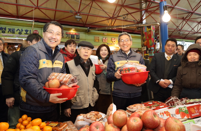 (조세금융신문=민서홍 기자) KB국민은행(은행장 윤종규)은 설 명절을 맞아 이웃과 사랑을 나누고 전통시장 활성화를 위해 금융감독원, 국제구호단체 기아대책과 함께 서울 신당동에 위치한 서울중앙시장에서 설맞이 ‘전통시장 사랑나눔’ 행사를 가졌다고 24일 밝혔다.