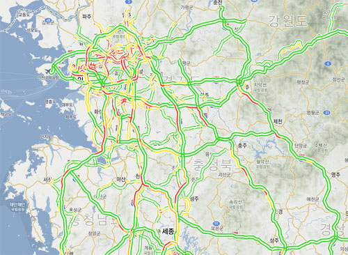 현재 고속도로 교통상황 집계를 보면 경부고속도로 북천안 부근에서 부산방향으로 차량들이 정체된 상태며, 서해안고속도로 경우 서평택 부근에서 역시 귀성 차량 행렬이 이어지고 있다.