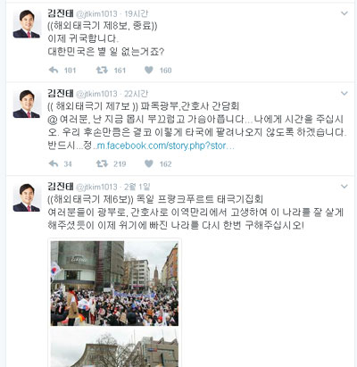 특히 김진태 의원은 매일 같이 트위터에서 당시 교민들과의 간담회 상황을 곧바로 전하기도 했다.