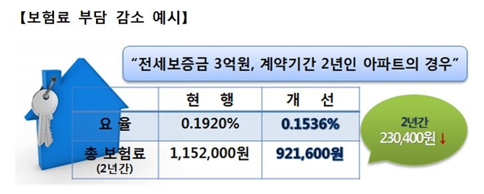 한편 서울보증보험의 전세금보장보험료는 3월 6일부터 20%가량 인하될 예정이다. 서울보증보험은 집주인 동의 등 절차 간소화, 국민들의 수요 증대 등을 반영해 아파트의 경우 보험료를 전세금의 0.1920%에서 0.1536%로 인하한다. 기타 주택의 경우 전세보증금의 0.2180% 에서 0.1744%로 인하된다.