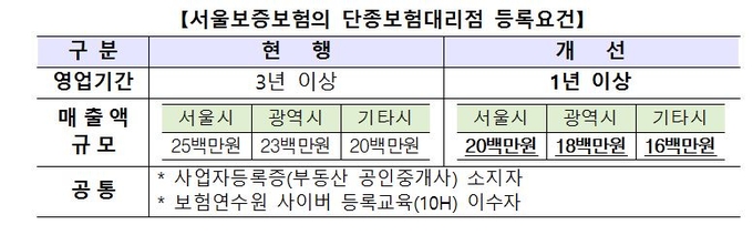 주로 부동산중개업소가 가맹대리점(단종보험)을 겸하게 된다. 기존에는 서울시의 경우 영업기간 3년 이상, 매출규모 2500만원 이상인 경우 대리점을 낼 수 있었지만 앞으로는 영업기간 1년 이상, 매출 규모 2000만원 이상으로 확대 적용하게 된다.