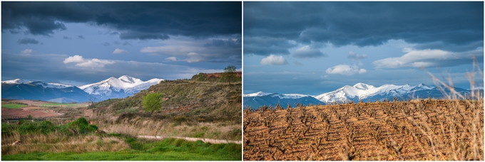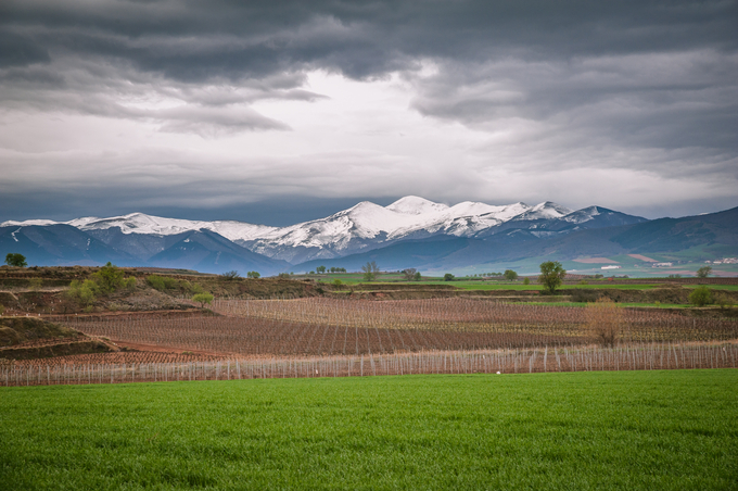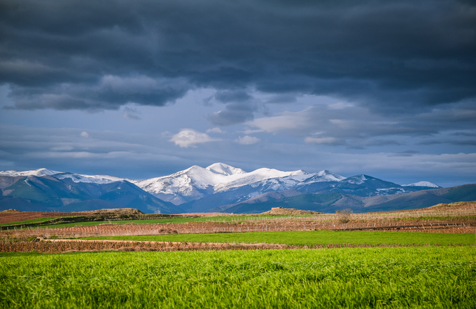 ▲ 포도밭이 펼쳐진 들판 사이로 걸어가니 멀리 눈이 녹지 않은 산맥이