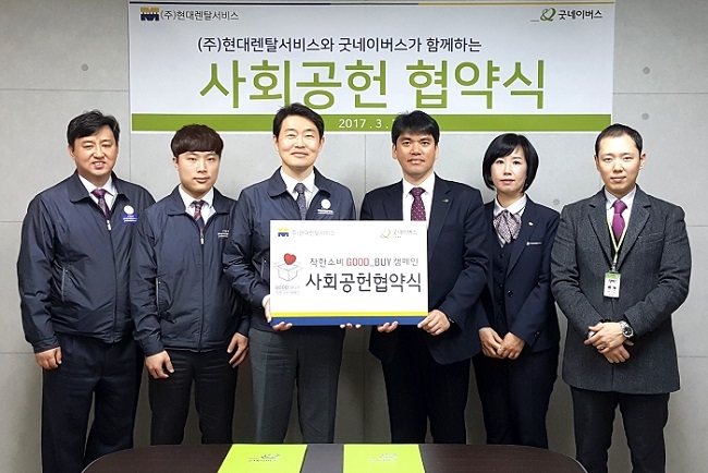 (조세금융신문=양학섭 기자) 생활건강가전 전문업체 현대렌탈서비스(대표 가철)와 국제구호개발 NGO 굿네이버스가 지난 3월 31일 해외 식수위생지원 사업을 위한 ‘착한소비(GOOD_BUY) 사회공헌 협약'을 체결했다.