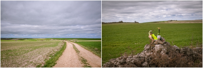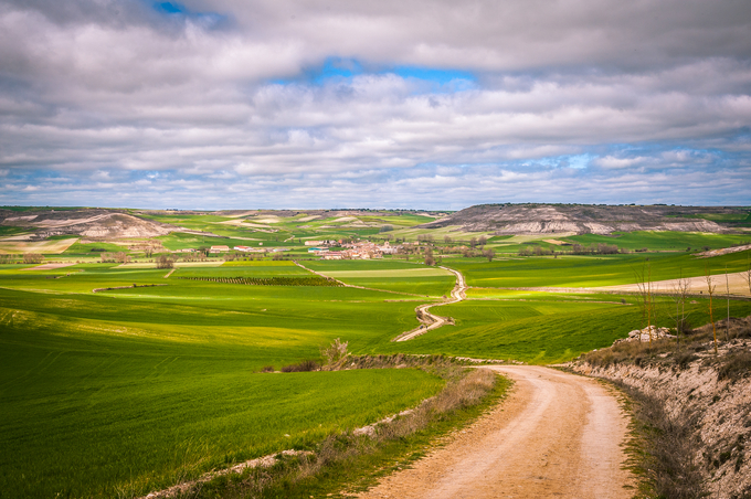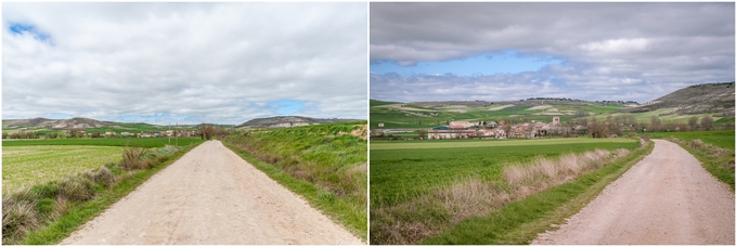 de Camino가 멀리서 보이기 시작한다. 메쎄따를 넘어 광활한 평야에 있는 Hornillos de Camino 마을은 인상적이다.