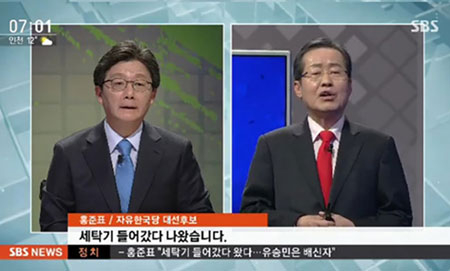 지난 12일 SBS 대선후보 TV토론에서 홍준표 세탁기 발언이 다음날까지 관심이 모아지고 있다.