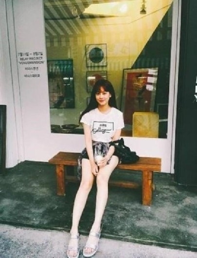 공개된 사진 속 그녀는 짧은 숏팬츠를 입은 채 벤치에 앉아있는 모습이다.