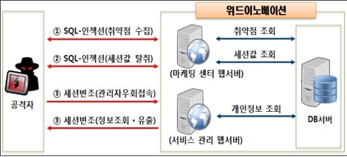 지난 26일 방송통신위원회와 미래부는 지난 달 발생한 위드이노베이션 해킹 사고와 관련해 발표한 조사 결과에 따르면 해커는 ‘여기어때 마케팅센터 웹페이지’에 SQL 인젝션 공격을 통해 DB에 저장된 관리자 세션값을 탈취한 것으로 나타났다.