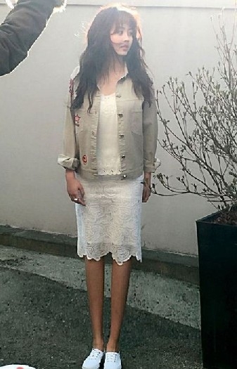 공개된 사진 속에는 화이트 컬러의 레이스 스커트와 자켓을 입고 길가에 서 있는 김소현의 모습이 담겼다.