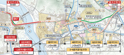 12일 서울시는 이 같이 밝혔다. 별내선 전 구간(12.9㎞)의 총사업비는 1조 3,184억 원이며, 이번 서울시 구간(3.72㎞)의 발주 공사비는 2,797억 원으로 2022년 완공을 목표로 추진되고 있다.