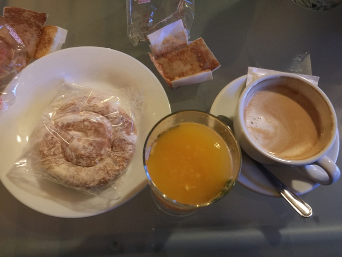 간단한 아침거리를 사서 식사를 했다. 꽤 넓은 알베르게 안을 잠시 둘러보고 밖으로 나와보니 비가 오고
