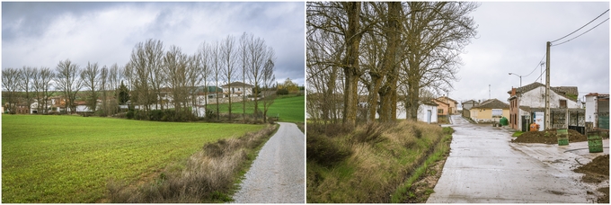 전통 까미노를 따라 갈 때는 마을 옆을 지나가는지 안내 표지판만 보인다.