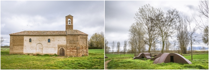 ▲ Sahagun에 다와 가는 듯 한데 도시가 보이는 지점에서 갑자기 길이 우측으로 안내하기에 따라 왔더니 작은 성당과 조형물들이 있다. 그리고 도시로 향하는 길은 원래 방향으로 다시 바뀐다.