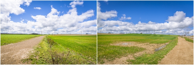 ▲ 마을을 벗어나 걸어가는데 지평선이 멀리 펼쳐져 보이고 비는 거의