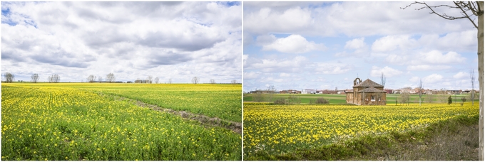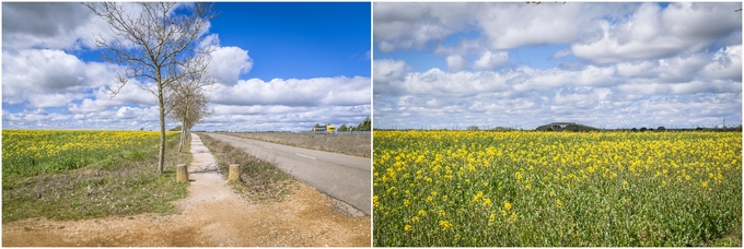 ▲ 직진해서 가는데 낮은 구름 그리고 지평선과 더불어 유채꽃이 넓게