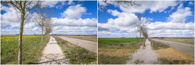 소개하는 구간이지만 출발할 때 비가 오는 바람에 Sahagun을 지나고서야 태양에 비친 그림자를 볼