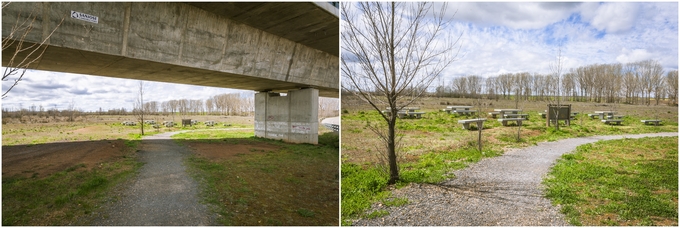 옛 로마 길로 가려면 도로를 건너 다른 길로 가야 한다.