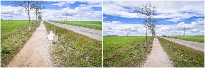 ▲ 도로를 따라 이어지는 길과 계속되는 지평선에 지루해 질 때쯤 다음 마을 표지판을 만날 수 있었다. 실제 마을로 들어가지는 않고 바로 직진해서 또 다른 마을로 걸어가게 되어 있다.