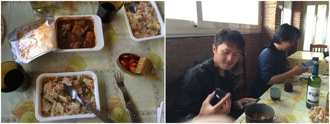▲ 주방이 딸리 식당이 따로 있어 만들어 먹으려고 하다가 상점에 가서 사온 간편식으로 저녁을 먹는다. 우측 사진에 잇슨과 론이 앉아 있는게 보인다.