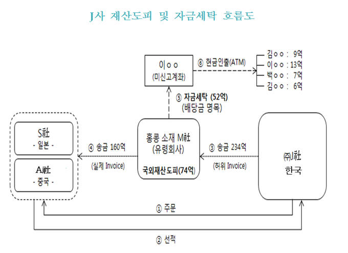 관세청은 또 이들이 빼돌린 재산 중 52억원 상당을 페이퍼컴퍼니의 배당금으로 위장해 개인 비밀계좌에 입금하고, 계좌와 연계된 국제직불카드를 발급받아 국내에서 ATM기를 통해 인출하는 등의 수법으로 범죄자금을 ‘세탁’한 혐의도 추가했다.