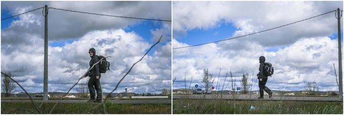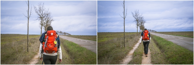 ▲ 툰다는 추운지 맑아졌는데도 우비에 모자까지 쓰고 간다. 뒷모습을 보면서 배낭에 칼을 엑스자로 꽂으면 닌자 같다고 닌자 툰다라고 별명을 붙여준다.