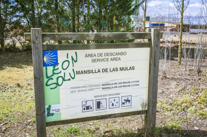 비가 많이 올 거라고 스패츠까지 착용하고 출발을 했었는데 걸어오는 동안 날씨가 맑아지면서 파란 하늘이 보이기 시작한다. 이제는 더 비가 안오겠지 싶어 스패츠와 우비를 챙겨 넣고 잠시 휴식한다. 출발할 때는 여기에서 내일 레온을 향해 출발할까 했는데, 날씨가 좋아진데다 체력도 괜찮아져서 차라리 조금 다음 날 좀 더 이른 시간에 레온으로 들어가면 도시를 구경하기 더 좋을 듯 하여 한 두 마을까지 더 걸어가보기로 한다.