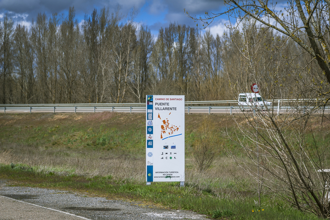 de Villarente 도시 안내 표지판이 이전 마을을 벗어나 조금만 걸어가면 바로 나타난다. 실제