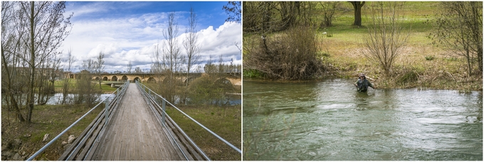 24.7km 걸어와서 도착한 곳이다. 직전 마을에서 2km 정도 걸어오면 되는데 작은 숲을 지나 강을 건너는 동안물속에 몸을 담그고 낚시를 하는 사람들을 볼 수도 있다. 다리 밑에 있는 공원을 지나가면 도시 안으로 들어가게 된다.