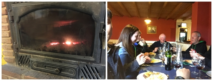 동안 나무 벽난로에서 불을 쬐며 휴식했다. 마르코와 까를로는 또 만났다. 다들 같이 식사하며 왜 순례길을 택했는지 이야기를 나누는 장면이다.