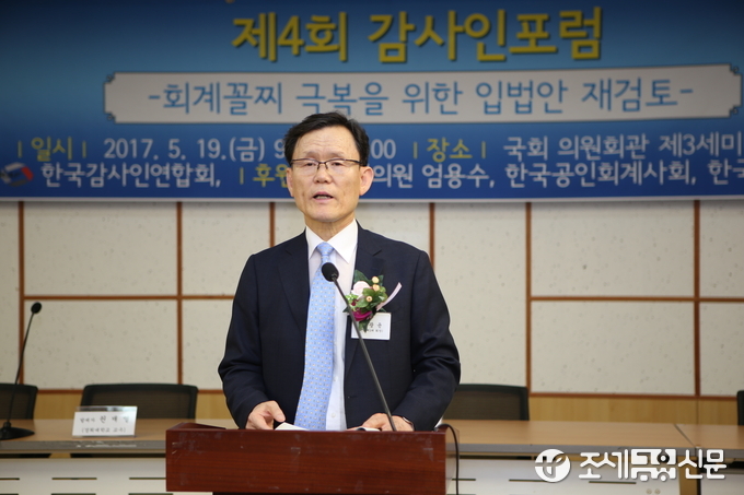 (조세금융신문=김필주 기자) 제4회 감사인포럼 주제 발표에 앞서 한국감사인연합회 김광윤 회장이 개회사를 발표하고 있다.