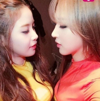공개된 사진 속 마마무 솔라와 문별은 마주보고 서서 뽀얀 피부와 오똑한 콧날을 자랑하고 있다.