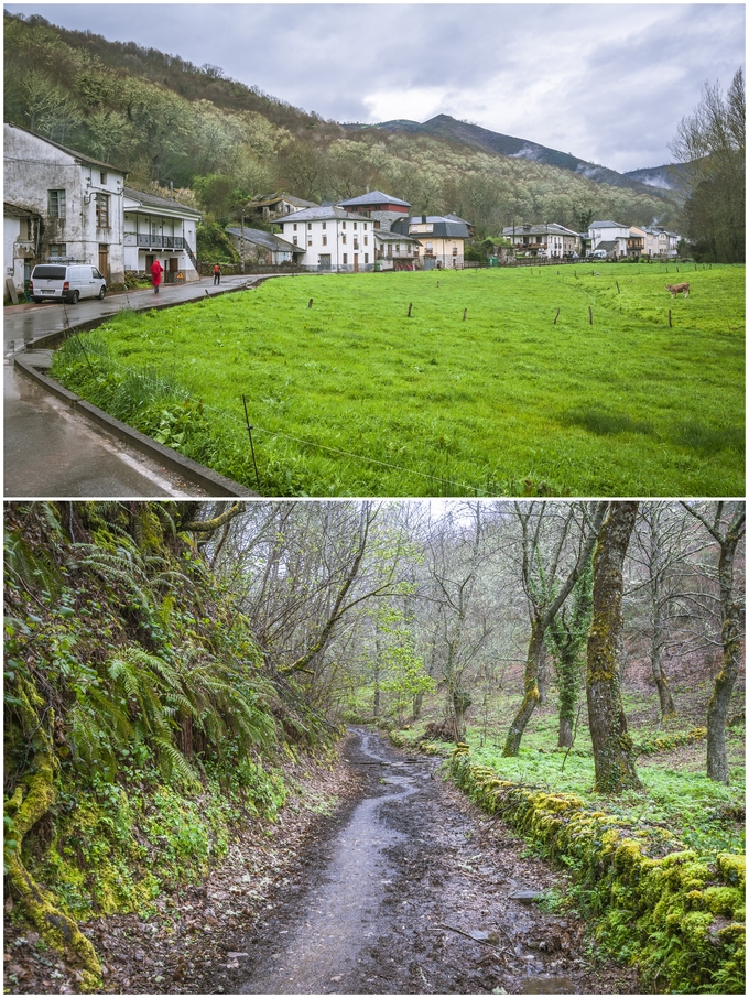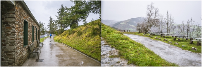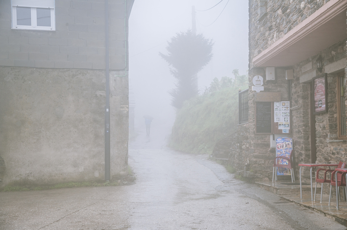 Las Herrerias에서 4km정도 걸어서 La Faba라는 마을에 도착한다. 마을에 도착하는 동안 만나는 오르막 길은 모처럼 한국의 산을 등산하고 있는 듯한 느낌을 받을 수 있는 구간이다. 그 만큼 힘이 드는 구간이다. 땀 흘리며 오르는 동안 비가 오지만 덕분에 안개가 끼어 멋있는 풍경이 연출 된다.
