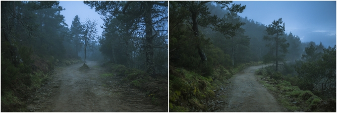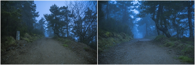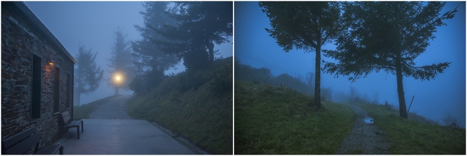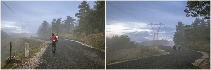 ▲ 조금 이른 시간에 길을 나서니 어둠과 함께 자욱한 아침 안개가 끼어 길 표시가 구분이 잘 안되는 수준이다. 숲 길을 따라 안개를 헤치고 걸어가는 동안 숲에서 느껴지는 느낌은 아침을 상쾌하게 한다.