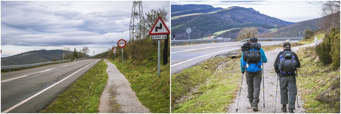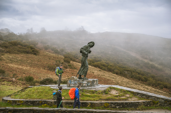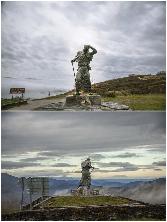 순례자들의 모습을 엿볼 수 있다. 론과 서로 동상을 배경으로 사진을 찍어 주고 길을 나선다. 길은 동상 건너편으로 길을 건너오면 까미노 표시가 있다.