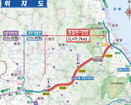 이에 따라 서울서 양양까지 이동거리가 25.2km, 주행시간이 40분 단축되어 연간 2,035억 원의 경제적 효과가 기대된다.