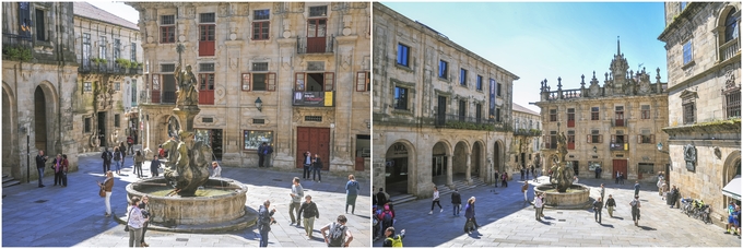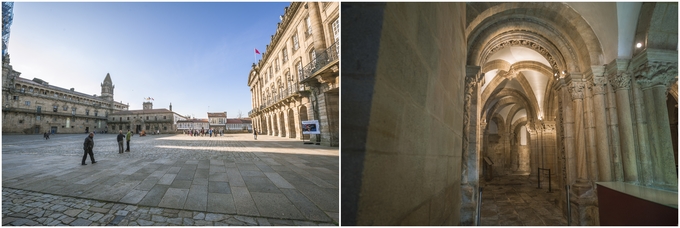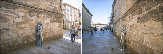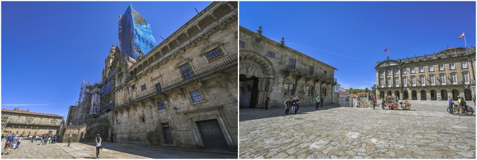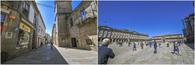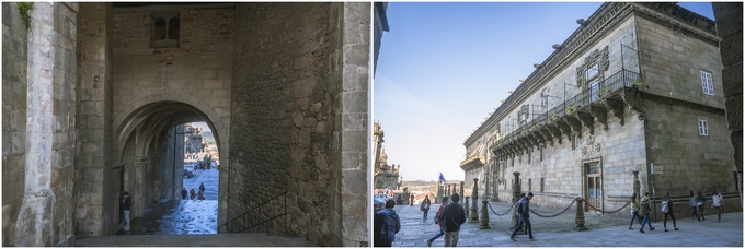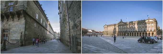 있는 곳이 어딘지 헤매고 있으니 산티아고 시민으로 보이는 사람이 뭘 찾는지 대뜸 알아보고는 산티아고 성당 쪽에서 볼 때 오른쪽에 있는 호텔 밑으로 내려가서 바로 우측길로 가다보면 순례자 증서 발급해 주는 곳이 있다고 알려준다. 감사하다고 하고 와보니 입구에서 경비원들이