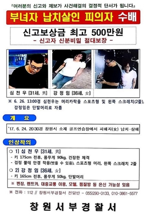 특히 창원 골프장 납치 용의자들은 골프연습장에서 여성을 납치해 경남 고성에 있는 폐 주유소에서 살해한 뒤 경남 진주시 진양호 진수대교 인근에 시신을 유기했다.