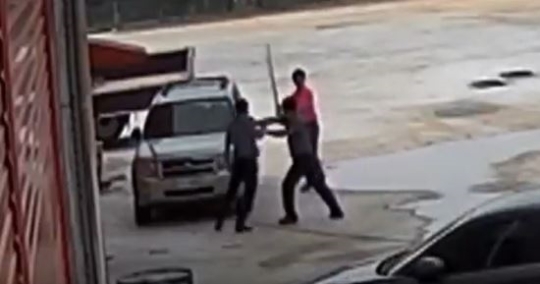 이후 말싸움을 하는 제스처 뒤 한 남성이 각목을 들고 와 마구 폭행하는 모습이 담겨져 있다.