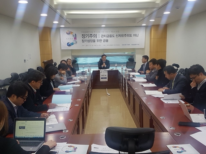 이어 오랫동안 금융의 장기주의는 실종되고 가계부채 확대를 통한 수익성추구와 주주이익극대화로 금융시장이 왜곡되어 왔음을 지적하고, 이번 포럼에서 논의된 내용이 정부의 금융 및 기업정책, 소득주도 및 혁신성장을 위한 정책적 참고 자료로 활용될 수 있기를 희망한다고 밝혔다.