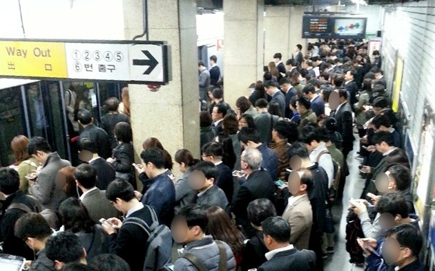 승객들이 운행이 중단된 일반열차에서 급행열차로 옮겨타면서 승강장이 붐비고 있다. 코레일측은 정확한 사고 원인을 파악하기위해 조사 중이라고 밝혔다.