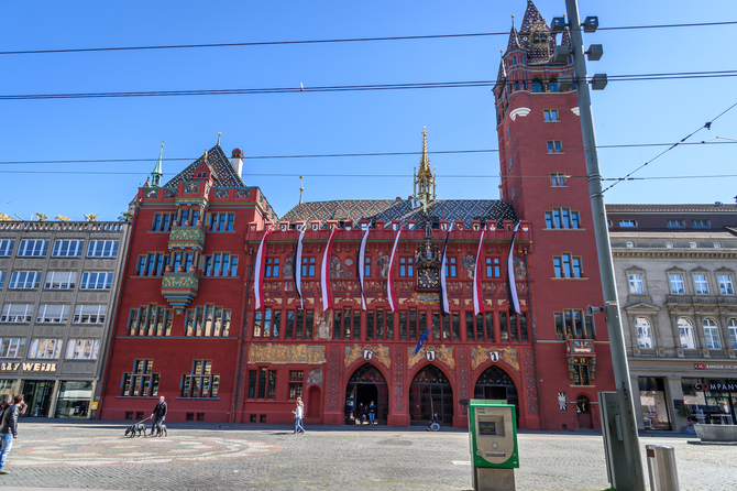 중앙역에서 8번 트램을 타고 도착한 것이 바젤에서 유명한 시청사 Rathaus이다. 11번 트램을 타도 여기에 도착할 수 있다.