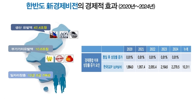 이를 통한 남북 경제통합시 향후 5년간 연평균 GDP는 0.81%p 성장하고 일자리는 12만8000개가 창출 가능할 것으로 예측했다.