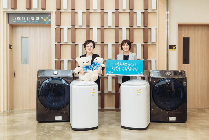 이번에 방문한 애란원에는 영·유아 자녀를 키우는 미혼한부모들의 가사 부담을 줄여주고 진드기와 유해세균을 없애 한 여름 위생에 도움되는 14kg 대용량 건조기 ‘그랑데’와 육아에 필요한 삶음 세탁이 가능한 ‘아가사랑+’ 세탁기가 전달됐다.