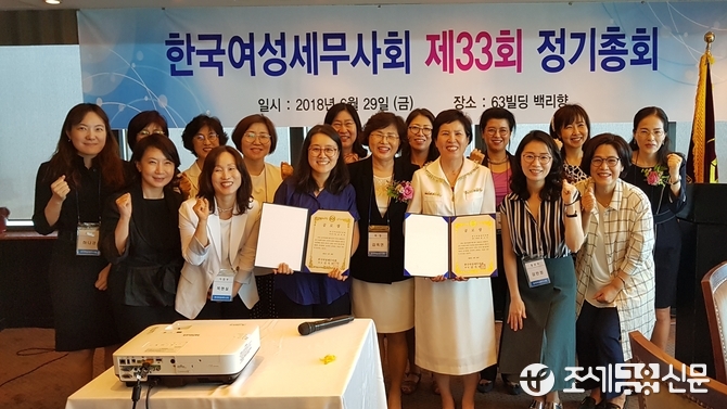(조세금융신문=이지한 기자) 한국여성세무사회(회장 김옥연) 제33차 정기총회가 29일 63빌딩에서 열려 회무보고와 함께 2017 회계연도 결산안과 2018 회계연도 예산안을 통과시켰다.