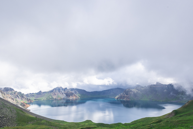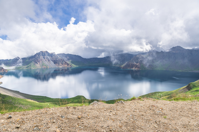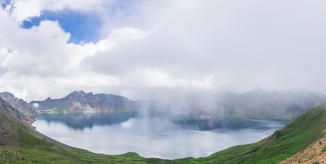 천지에 오르는 동안 안개가 계속 다가와서 걱정을 하며 올랐더니, 정상에 도착하고 안개가 걷히고 파란 하늘이 드러나니 그 장엄함이 감동을 준다. 천지를 보고 내려가니 안개가 덮이면서 늦게 오른 여행객들은 천지를 제대로 보기 힘들었다고 하니 서둘러 오른 보람이 있었다.