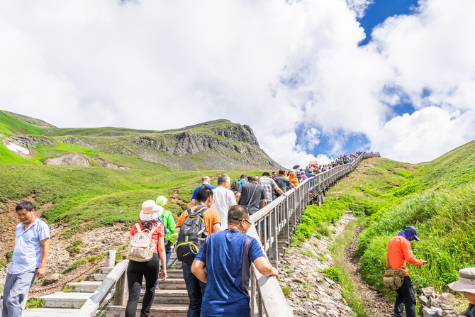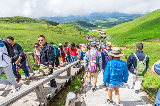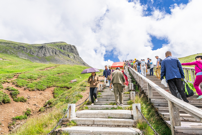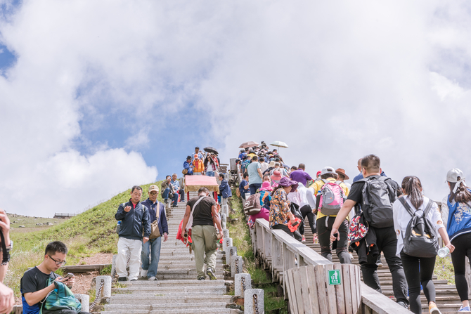 백두산 북파 코스 이전에는 서파 쪽으로 백두산에 주로 올랐었다. 전문 산악인들이 주로 오르던 백두산 등정이 2007년부터는 일반 관광으로 열리기 시작한 것이다. 이후 북파 코스가 개방되면서 현재는 북파 코스로 관광객들이 더 많이 몰리고 서파 코스는 상대적으로 조금 여유가 있는 편이다. 아마도 서파 코스는 1,442개의 계단을 올라가야 정상에 도착할 수 있고 북파 코스는 정상 바로 앞까지 차로 올라갈 수 있는 것도 이유가 될 것이다.
