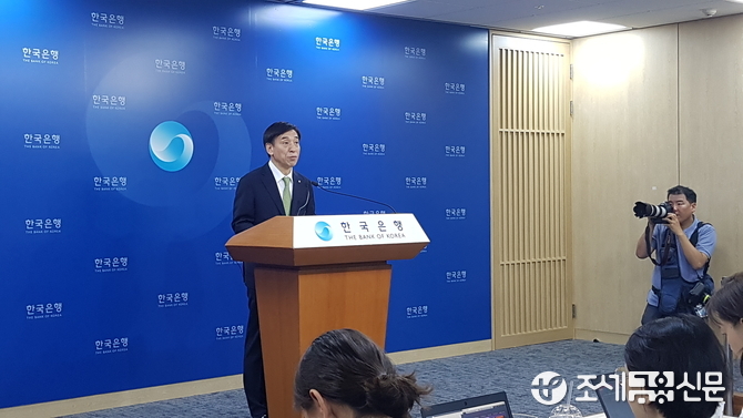 금통위에 따르면 현재 세계경제는 견조한 성장세는 지속하고 있으며 국제금융시장은 글로벌 무역분쟁 우려와 미 달러화 강세 등의 영향으로 변동성이 확대됐다. 앞으로도 세계경제의 성장세는 보호무역주의 확산 움직임과 주요국 통화정책 정상화 속도, 미국 정부 정책방향 등의 영향을 받을 것으로 보인다.