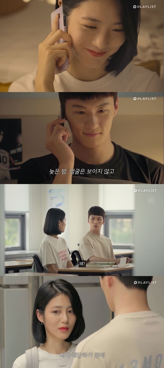 8일 공개된 플레이리스트 '에이틴' 13화에서 도하나(신예은 분)은 잠이 오지 않는다는 자신의 SNS 글을 보고 연락한 남시우(신승호 분)과 늦게까지 통화를 나누며 둘만의 시간을 보냈다.